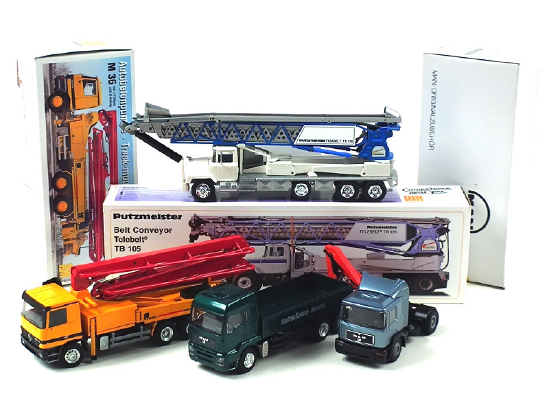 CONRAD (ALLEMAGNE) 36112 MACK-PUTZMEISTER TB105 Convoyeur à bande blanc cassé, gris & bleu