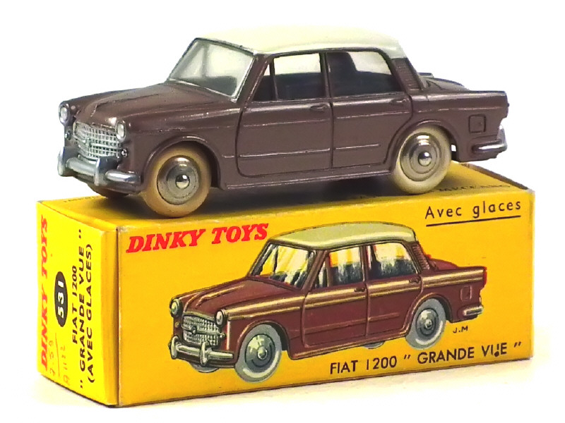 DINKY TOYS (FRANCE) 531 FIAT 1200 GRANDE VUE (version avec jantes convexes) havane métal, toit crème