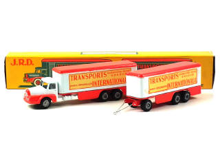JRD (FRANCE) 127 UNIC LAUTARET 'TRANSPORTS INTERNATIONAUX' avec remorque orange & blanc