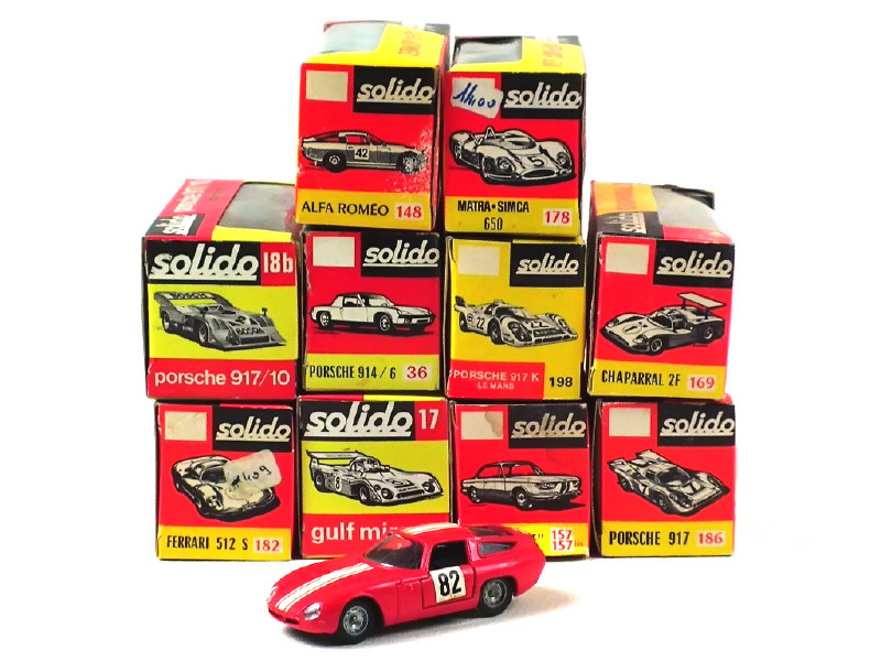 comprend : PORSCHE 914/6 (boîte en état 'c'), 917, 917/10 (boîte en état 'c'), 917K (petites inscriptions sur la boîte), GULF MIRAGE, FERRARI 512 S, MATRA SIMCA 650, ALFA ROMEO GIULA TZ (boîte en état 'c'), BMW 2000 CS rallye (jantes légèrement ternies & boîte en état 'c') & CHAPARRAL 2F (en état 'B' carrosserie encrassée & boîte en état 'c')