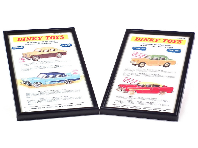 présente la HILLMAN MINX & la HUDSON HORNET - destinée probablement au marché belge en langues française & flamande - encadrée sous verre