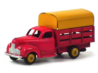 DINKY TOYS (FRANCE) 25L STUDEBAKER Tapissière (avec cabine type 2 & roues à pneus 'M') rouge, jantes & bâche jaunes