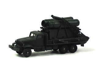 avec 10 éléments de pont & 2 canots - quelques pneus non conformes - carrosserie encrassée & tachée - extrémités de pare-chocs & support de plate-forme déformés - décalque incomplet