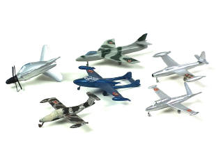 états de 'B' à 'D' - miniatures reproduisant les modèles : CONVAIR, AQUILLON, FOUGA MAGISTER, HAWKER HUNTER, THUNDERJET & MORANE-SAULNIER (en état 'R' avec un petit manque)
