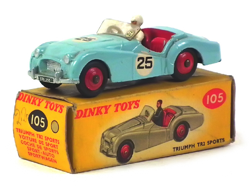 DINKY TOYS (GB) 111 TRIUMPH TR2 de compétition bleu ciel, intérieur & jantes rouges