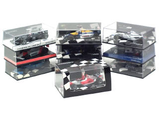 miniatures reproduisant notamment les modèles : WILLIAMS FW15 RENAULT, WILLIAMS BMW FW23, MINARDI FONDMETAL M02, BENETTON PLAY LIFE 2000 , WILLIAMS-TOYOTA FW29B, Mc LAREN FORD MP4, TYRRELL FORD 025, TOLEMAN TG 184, TYRRELL P34 & PANASONIC TOYOTA TF 105 - voitures pilotées notamment par : ALAIN PROST, JUAN PABLO MONTOYA, G. MAZZACANE, GIANCARLO FISICHELLA, K. NAKAJIMA, ANDREA DE CESARIS, JOHN VERSTAPPEN, JOHNNY CECOTTO, PATRICK DEPAILLER & JARNO TRULLI