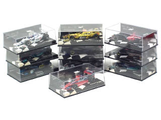 miniatures reproduisant notamment les modèles : RED BULL SAUBER PETRONAS C18 & C19, BENETTON RENAULT 195, TORO ROSSO STR2, JORDAN MUGEN HONDA 198, BRABBHAM BT 46, WILLIAMS FW17, Mc LAREN MERCEDES MP4-20, STEWART FORD SF-2 & JORDAN HART 192 - voitures pilotées notamment par : PEDRO DINIZ, MICHAEL SCHUMACHER, V. LIULLI, JEAN ALESI, DAMON HILL, JACQUES VILLENEUVE, NIKI LAUDA, KINI RAIKKONEN, JOHN VERSTAPEN & L. GUMELMIN