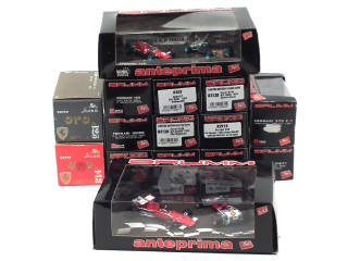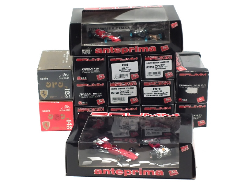 comprend : BRM P57 (2 exemplaires différents), FERRARI 158 (3 exemplaires différents), FERRARI 312B (4 exemplaires différents dont 2 regroupés dans un coffret), 312 (2 exemplaires différents), 126 C4, 126 C2, 375 (2 exemplaires différents), 158 (4 exemplaires différents dont une regroupée dans un coffret), 8CIL (regroupée dans un coffret) - on y retrouve notamment les pilotes : GRAHAM HILL, RICHIE GINTHER, LORENZO BANDINI, JOHN SURTIS, IGNAZIO GIUNTI, CLAY REGGAZZONI, CRIS AMON, RENE ARNOUX & GILLES VILLENEUVE