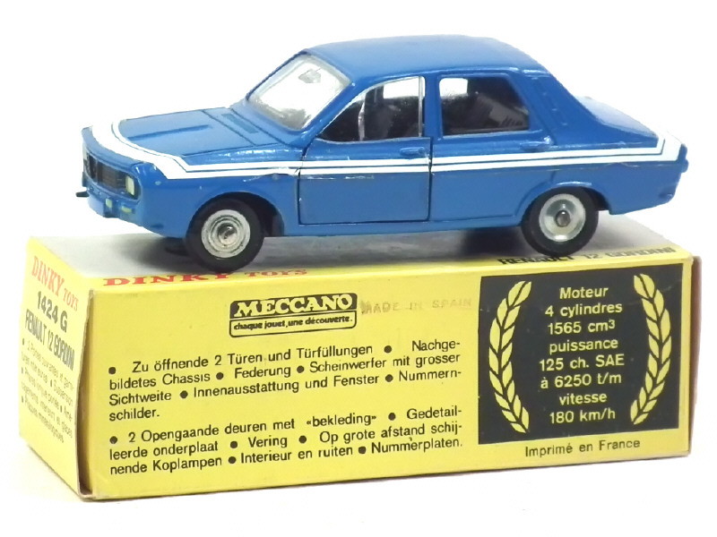 DINKY TOYS (FRANCE) 1424G RENAULT 12 GORDINI (made in SPAIN) bleu, phares jaunes