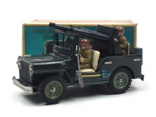 SHIOJI & CO (JAPON) ANTI-AIRCRAFT JEEP en tôle peinte vert foncé, jantes kaki