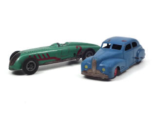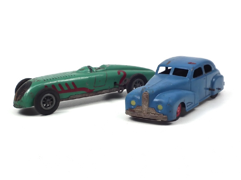 longueur : 26 cm - moteur à clef (fonctionne poussivement) - traces d'humidité sur la carrosserie & d'oxydation sur les parties nickelées - pneus craquelés