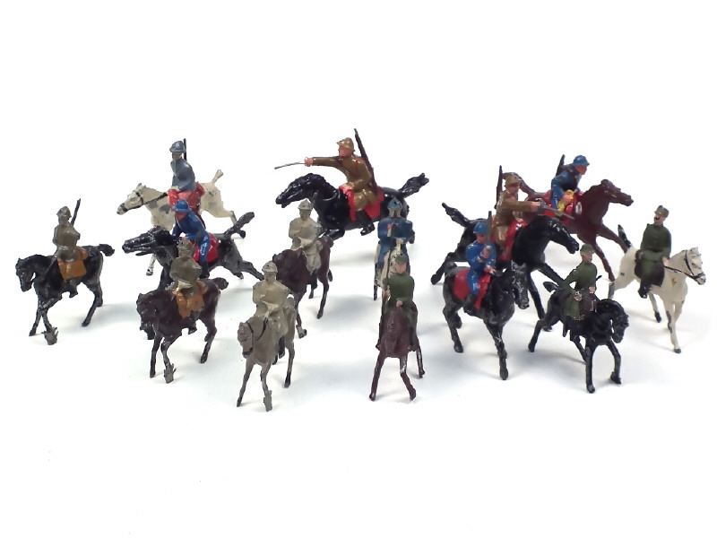 FIGURINES en plomb creux Ensemble de 14 soldats sur leur monture