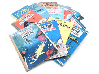 comprend notamment : 10 SPIROU (LA CORNE DE RHINOCEROS, LE GORILLE A BONNE MINE, LE REPAIRE DE LA MURENE....), 4 de JOHAN ET PIRLOUIT & d'ALIX (L'ILE MAUDITE) - quelques manques