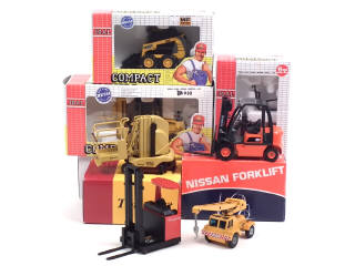 miniatures reproduisant notamment les modèles : GROVE TOUCAN, JCB, MASSEY-FERGUSSON 516 & NISSAN - 2 véhicules sans boîte