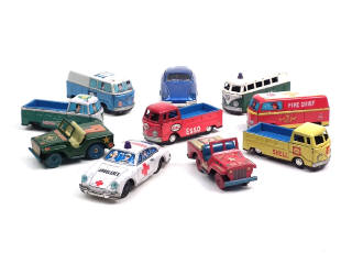 états de 'C' à 'D' - comprend : VOLKSWAGEN COMBI (6 modèles différents), JEEP & PORSCHE - moteurs à friction fonctionnent (un à revoir) - on y retrouve notamment les marques ENDOH & T.T - quelques traces d'oxydation