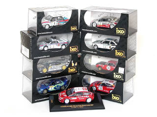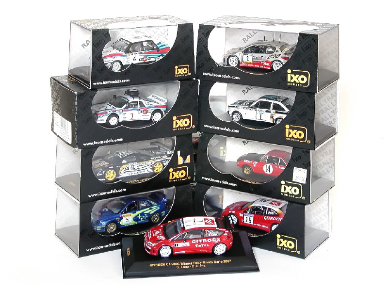 miniatures reproduisant les modèles : CITROEN C4, CITROEN XSARA, PEUGEOT 206, BMW M3, FORD FOCUS, LANCIA DELTA, LANCIA FULVIA, LANCIA 037, TALBOT LOTUS, SUBARU IMPREZA & SALEEN S7 (Le Mans 2001) - un dessus de boîte cassé