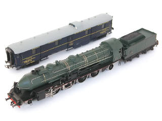 comprend : une locomotive à vapeur & un tender (motorisés) de marque FLEISCHMANN, 4 voitures lits, une voiture restaurant, une voiture salon & un wagon à bagages de marque FRANCE TRAINS - manque 4 aérateurs de toit - l'ensemble constitue une rame authentique