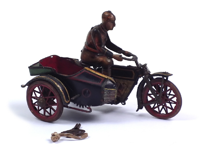 longueur 15 cm - moteur à clef (fonctionne) - avec clef - première moto miniature réalisée par la marque en 1923 - pneus séchés - petits manques & quelques retouches