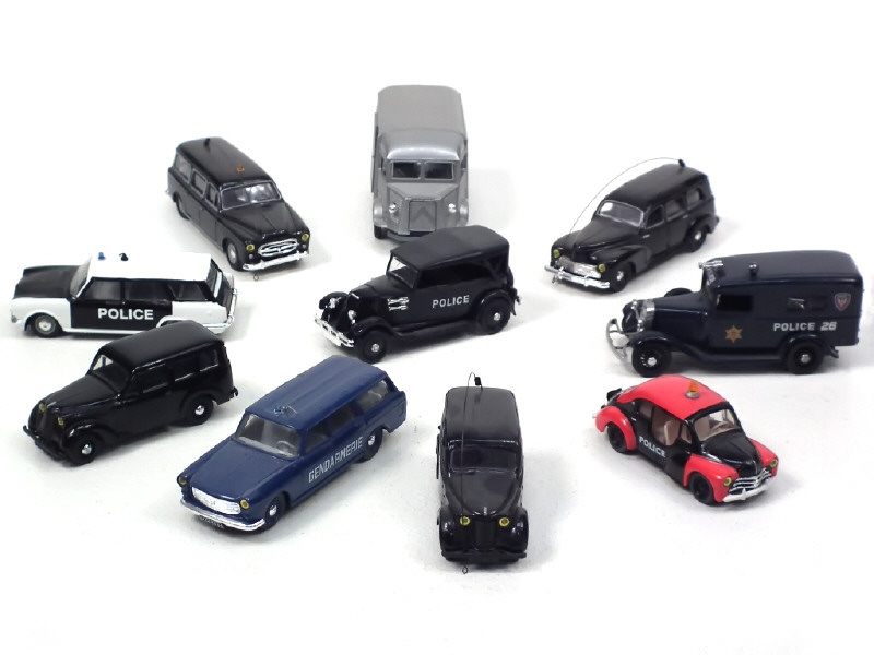 miniatures reproduisant notamment les modèles : CITROEN H, PEUGEOT 203, 403, 404, SIMCA 1500, RENAULT JUVA 4, 4 CV & FORD - 2 modèles de la collection LEADER