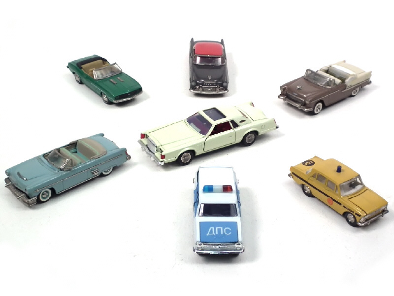 miniatures reproduisant notamment les modèles : CHEVROLET CAMARO 1969, BELAIR (avec parties non d'origine), MERCURY 1954, LINCOLN CONTINENTAL & DE SOTO 1956 (annotations & petits détails de peinture ajoutés sur le plancher) - on y retrouve notamment les marques : BUBY, COLLECTORS CLASSIC & YONEZAWA TOYS - petits manques & parties à recoller