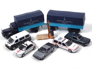 DIVERS (ALLEMAGNE) Ensemble de 4 voitures, une fourgonnette, un camion avec remorque & un chariot-élévateur