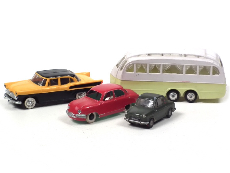 états de 'C' à 'R' - miniatures reproduisant les modèles : SIMCA (carrosserie légèrement déformée), VESPA & HENON - on y joint une DYNA PANHARD (en état 'R' de la marque CLE) - quelques retouches