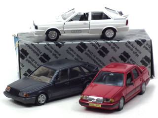 états de 'A' à 'C' - comprend : VOLVO 460 CL, VOLVO 440 TURBO (peinture du toit & du capot endomagée) & AUDI QUATRO (avec boîte en état 'b') - on y retrouve les marques : AHC MODELS & CONRAD - 2 rétroviseurs cassés à recoller