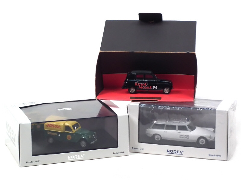 comprend : CITROEN 2CV fourgonnette 'KNORR', ID 19 'AMBULANCE MUNICIPALE' & RENAULT 4L 'RETRO MOBILE 14'