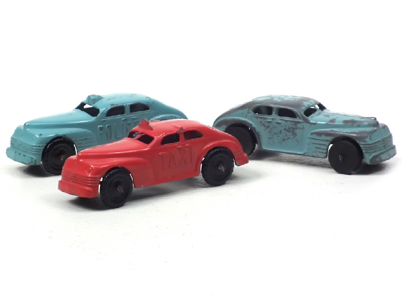 états de 'D' à 'E' - réalisation en alliage léger avec inscription 'IT'S A BEAUT' à l'intérieur de la coque - comprend notamment : voiture de police & taxi - 4 roues non d'origine avec traces d'oxydation sur les axes