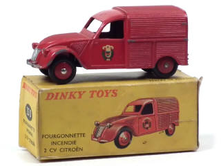 DINKY TOYS (FRANCE) 25D CITROËN 2CV Fourgonnette de pompiers rouge, jantes convexes rouges