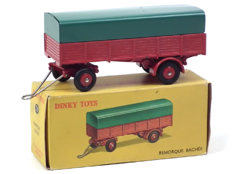 DINKY TOYS (FRANCE) 70 Remorque bâchée (version avec jantes convexes) rouge, bâche verte