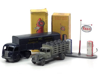 DINKY TOYS (FRANCE) Ensemble de 2 camions & d'un poste de ravitaillement