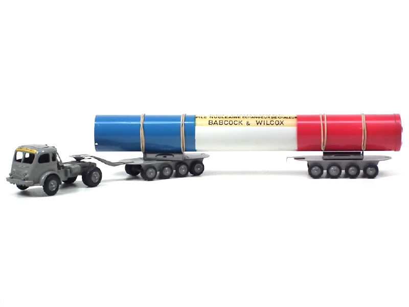 version avec décalque 'BOURGEY-MONTREUIL' (avec petits manques sur le fronton de la cabine du tracteur) & pile avec décalques 'BABCOCK & WILCOX MARCOULE' - traces d'oxydation sur le compartiment de la roue de secours (manque ressort)