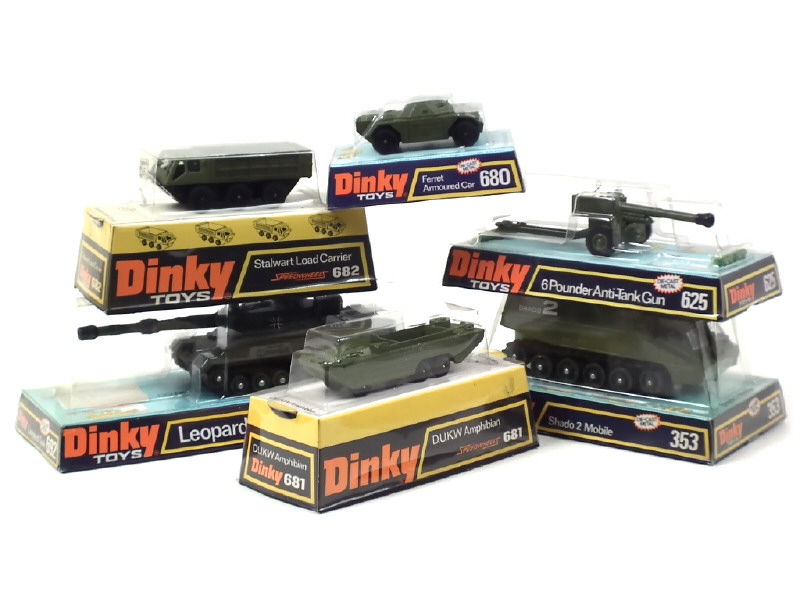 DINKY TOYS (GB) Ensemble de 5 véhicules militaires & un canon
