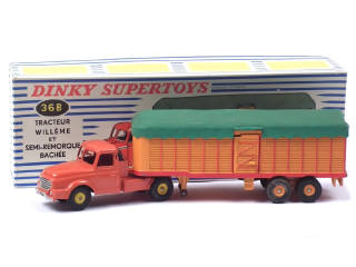 DINKY TOYS (FRANCE) 36B WILLEME Semi-remorque bâché (version avec jantes convexes) rouge & orange, bâche verte