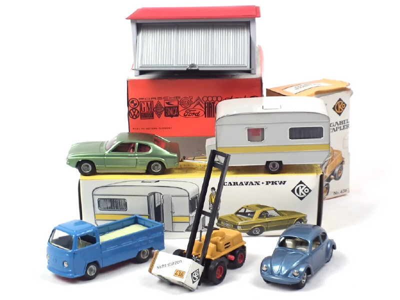 CKO (ALLEMAGNE) Ensemble de 3 véhicules, une caravane, un engin de travaux publics & un garage
