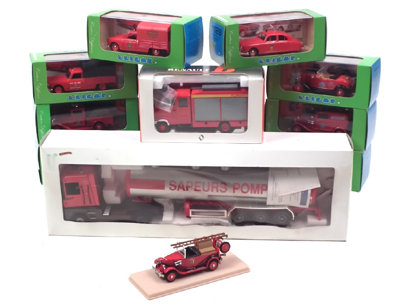 ELIGOR (FRANCE) Ensemble de 9 véhicules de pompiers