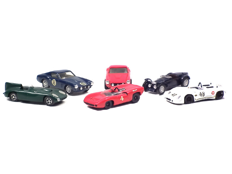 réalisation en métal - kit monté - miniatures reproduisant notamment les modèles : PORSCHE, BRISTOL, LOLA, RILEY & FERRARI - petits manques & parties à recoller