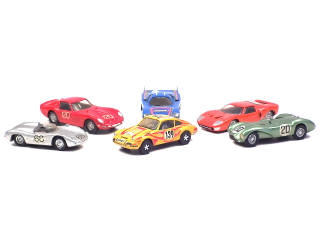 réalisation en métal - kit monté - miniatures reproduisant notamment les modèles : PORSCHE, FERRARI & FORD - petits manques & parties cassées