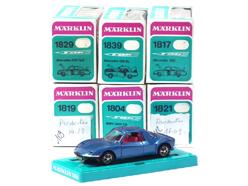 comprend : MERCEDES 300SL, 250 (2 exemplaires différents dont un avec suspensions arrière affaissées), AUDI 100 LS, BMW 2002 TI, 2800 CS (suspensions arrière affaissées) & MATRA M 530