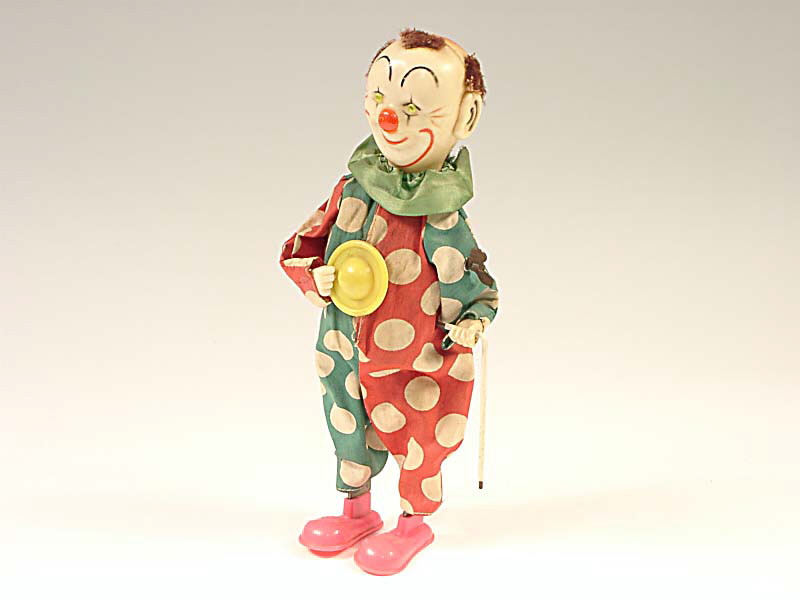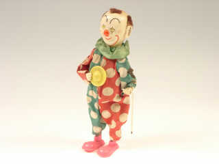 hauteur 25 cm - mécanisme à ressort (fonctionne) - en action le personnage fait tourner sa canne, secoue la tête & se déplace en faisant varier sa hauteur - clockwork mechanism (in working condition) - in action the character swings his cane, shakes his head & moves about, changing height
