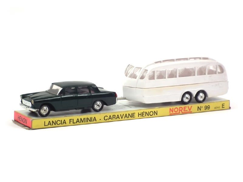 NOREV (FRANCE) 99 LANCIA FLAMINIA avec caravane HENON vert bouteille & blanc