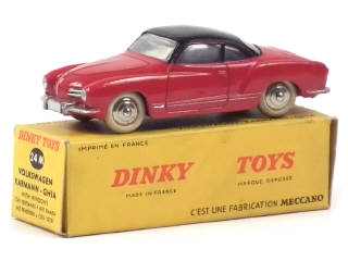 DINKY TOYS (FRANCE) 24M VOLKSWAGEN KARMANN GHIA (première version avec avant évidé) rouge, toit noir
