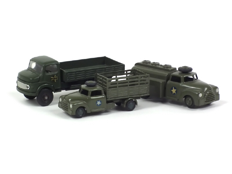 comprend : DODGE citerne, MINI DODGE plateau à clairevoie & MERCEDES plateau à ridelles