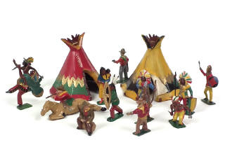 FIGURINES DIVERSES Ensemble de 9 indiens, 4 cow-boys & 2 tippies