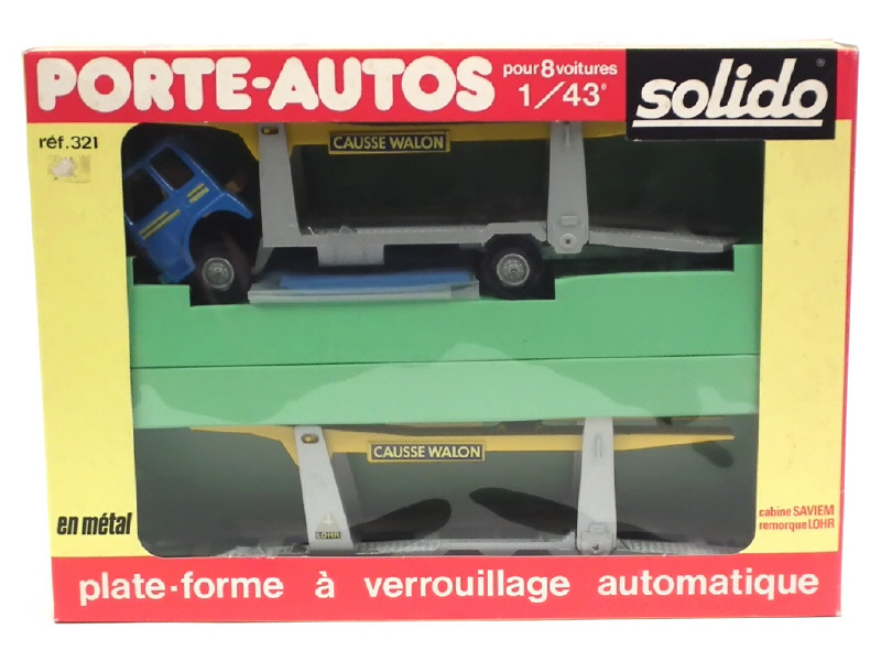 SOLIDO (FRANCE) 321 SAVIEM SM 300 Porte-voitures 'CAUSSE WALON' & sa remorque bleu clair & jaune