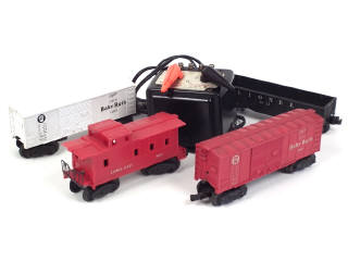 LIONEL (USA) Ensemble de 4 wagons de marchandises & un transformateur