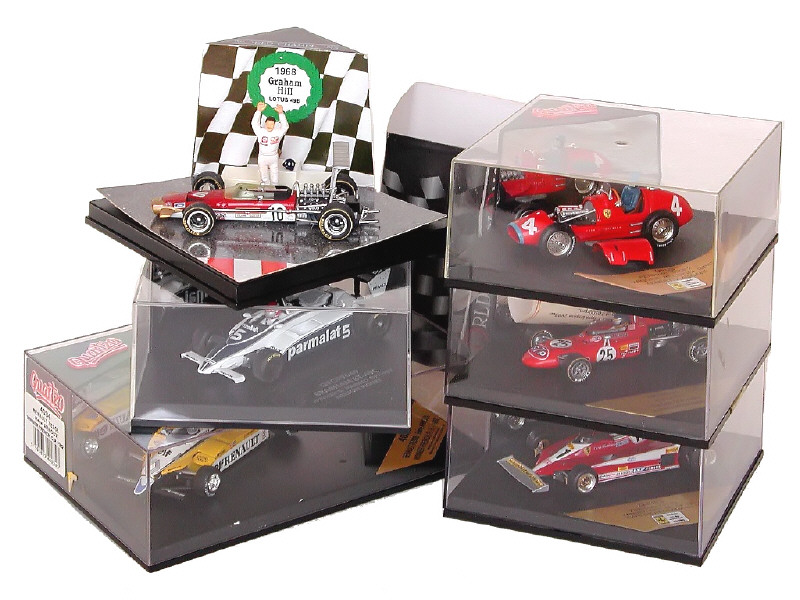 miniatures reproduisant les modèles : FERRARI 500 F2 GP de Belgique 1952, LOTUS 49B 1968 (série WORLD CHAMPIONS), MARCH 711 GP d'Italie 1971, FERRARI 312T3 GP d'Angleterre 1978, BRABHAM BT49C GP de San Marin 1981 & RENAULT RE30B GP de France 1982 - 2 boîtes état 'b'