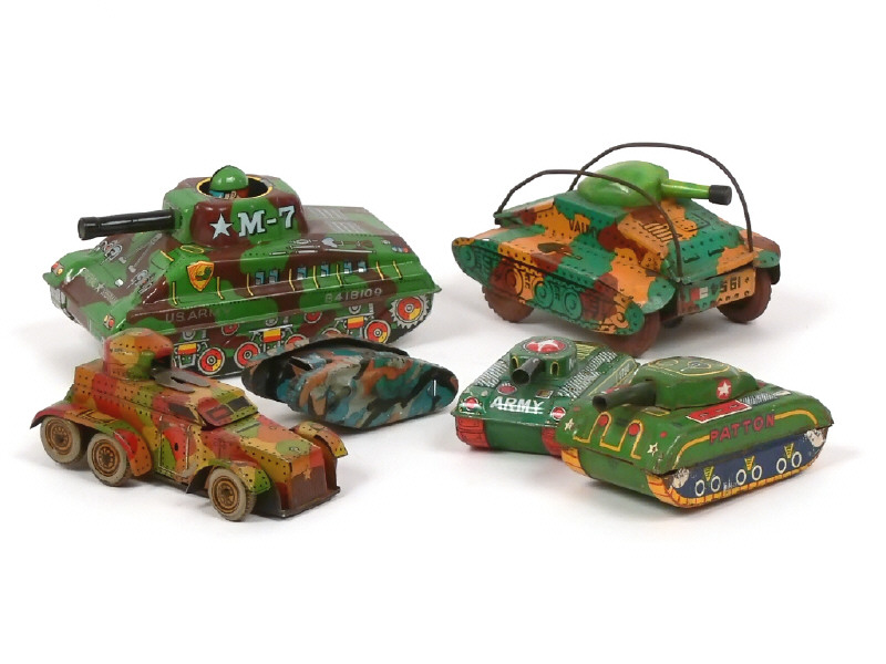 DIVERS Ensemble de 5 chars & une automitrailleuse en tôle lithographiée