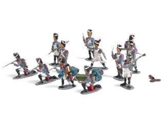 réalisation en plastique - avec manques - on y joint 2 pompiers assis en plastique de marque inderterminée